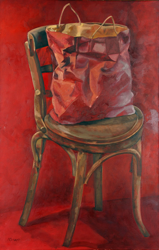 Silla con bolsa de papel, óleo sobre lienzo, 100×65 cms.